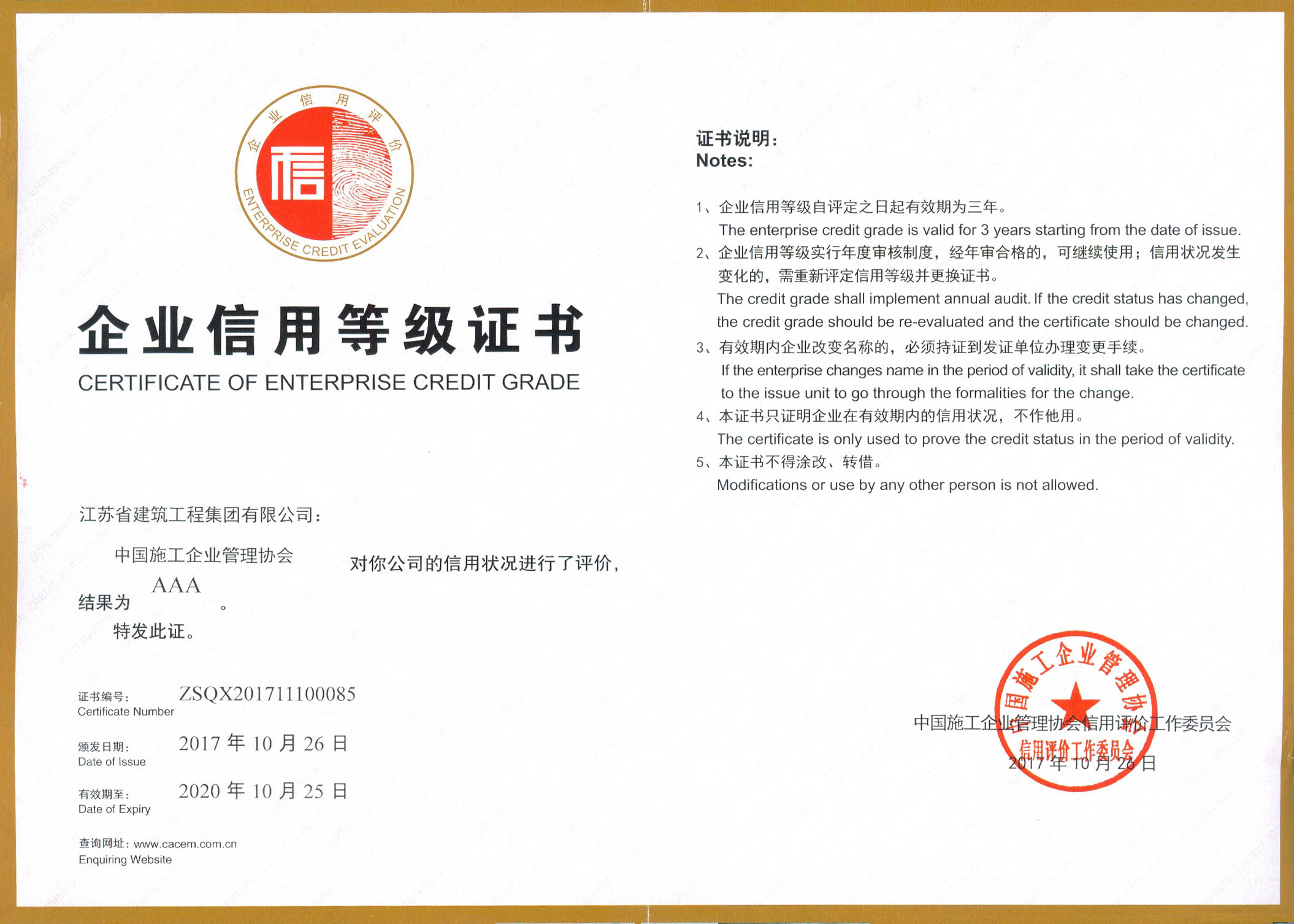 全國企業(yè)信用評價AAA級信用企...