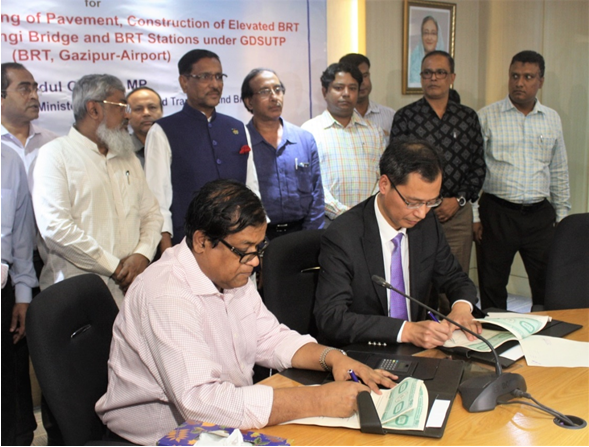 日前,孟加拉達(dá)卡齊亞國際機(jī)場—蓋資浦BRT項(xiàng)目2標(biāo)施工合同簽字儀式在位于孟加拉首都達(dá)卡的孟加拉大橋局(BBA)正式召開。江蘇交工董事長張曉宇與孟加拉大橋局總工程師迦比爾·艾哈邁德共同簽署了施工合同協(xié)議書。孟加拉公路交通和橋梁部部長奧巴杜爾·卡德爾、大橋局秘書漢德克·安沃魯爾·伊斯蘭等見證了整個簽約過程。